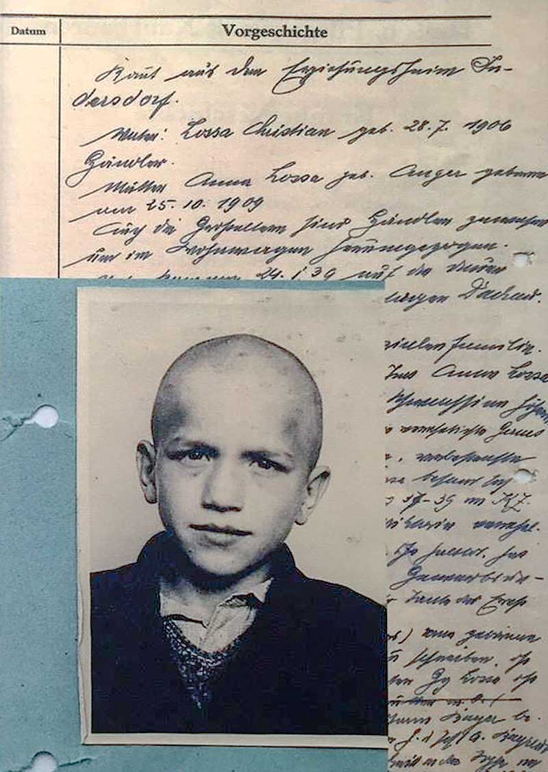 Ernst Lossa was born on November 1, 1929 in Augsburg. His father Christian Lossa belonged to the Yenish minority and earned his living as a peddler. His mother Anna Lossa died of pulmonary tuberculosis on September 24, 1933. Ernst Lossa grew up with a brother and two sisters Amalie, Anna and Christian Lossa. After the forced labor law of December 29, 1935 came into force, his father was imprisoned in the Dachau concentration camp from January 25, 1936 to December 24, 1938. According to Amalie Lossa, the father was taken into “protective custody” “because he cursed on an SS man”. Ernst Lossa and his two sisters were then placed in the "children's custody" in Augsburg-Hochzoll. In this home, as Amalie Lossa recalled, they were often discriminated against as “gypsies”, presumably because of their father's origin.