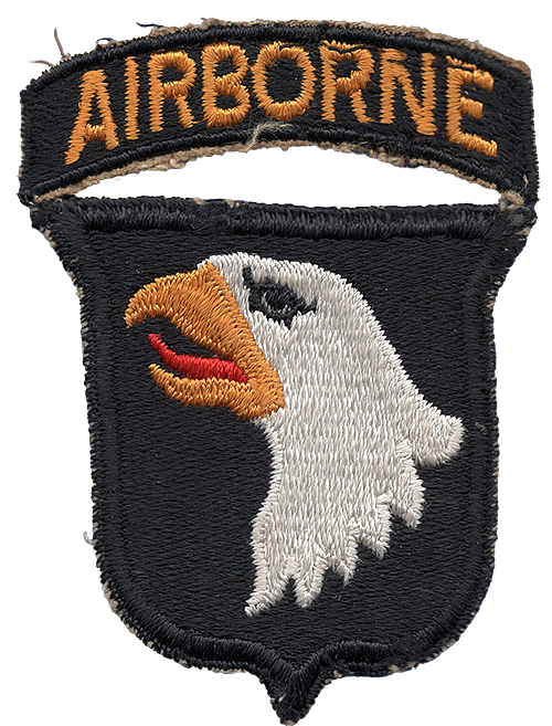 During his training in the Training Centers, he wore a patch worn by members of the 1st Airborne Brigade Paratroopers. Once the training was terminated, and a unit was joined, this patch was replaced by the appropriate division patch. Glen became a Staff Sergeant with F company, 2nd Battalion, 501st - which was added to the 101st Airborne in January 1944.