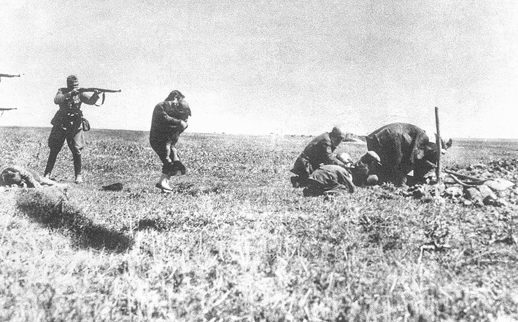 The Einsatzgruppen were responsible for the deaths of around 2 million Jews, often through mass shootings carried out in forests, ravines and fields, in what is refered to as the "Holocaust by bullets." One of the most infamous examples of these atrocities was the Babi Yar massacre near Kyiv, Ukraine, where 33.771 Jewish men, women and children were murdered over two days on September 29 and 30, 1941. These units were supported by local collaborators, reserve police battalions and auxiliary forces, further amplifying the scale of the killings.