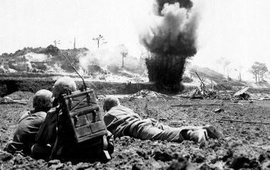 Despite the bloody fighting and severe casualties on both sides, the Japanese defeat was assured from the start. American overwhelming superiority in arms and numbers as well as complete control of air power — coupled with the impossibility of Japanese retreat or reinforcement- permitted no plausible circumstance in which the Americans could have lost the battle.