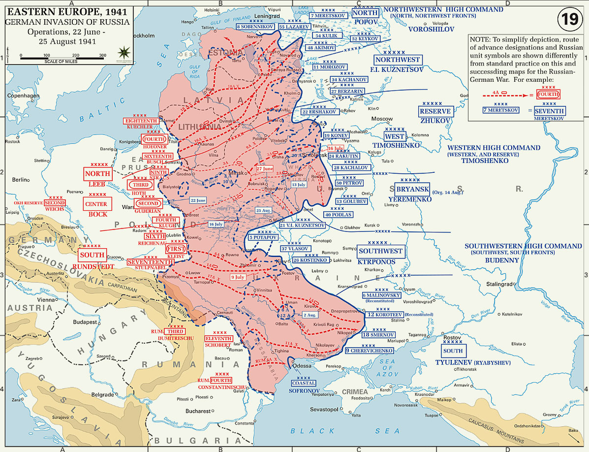 Following the Soviet occupation of Bessarabia and Northern Bukovina, the German High Command began planning an invasion of the Soviet Union in July 1940 (under the codename Operation Otto). Over the course of the operation, a force of over 3.8 million men - the largest invasion force ever in the history of warfare - invaded the western Soviet Union along a 2.900-kilometer (1.800 mi) front, with 600.000 motor vehicles and over 600.000 horses for non-combat operations. The offensive marked a massive escalation of World War II, both geographically and in the formation of the Allied coalition including the Soviet Union.