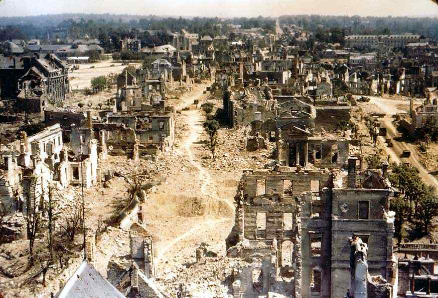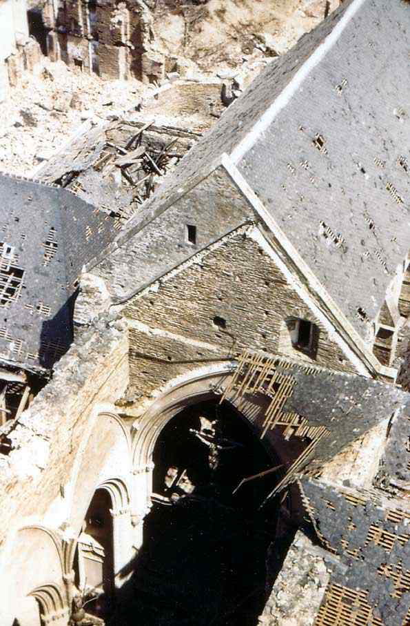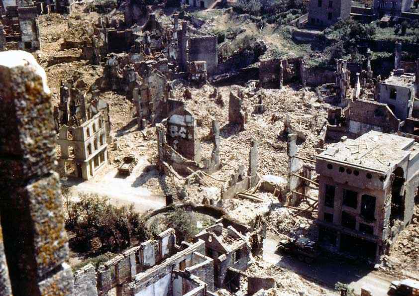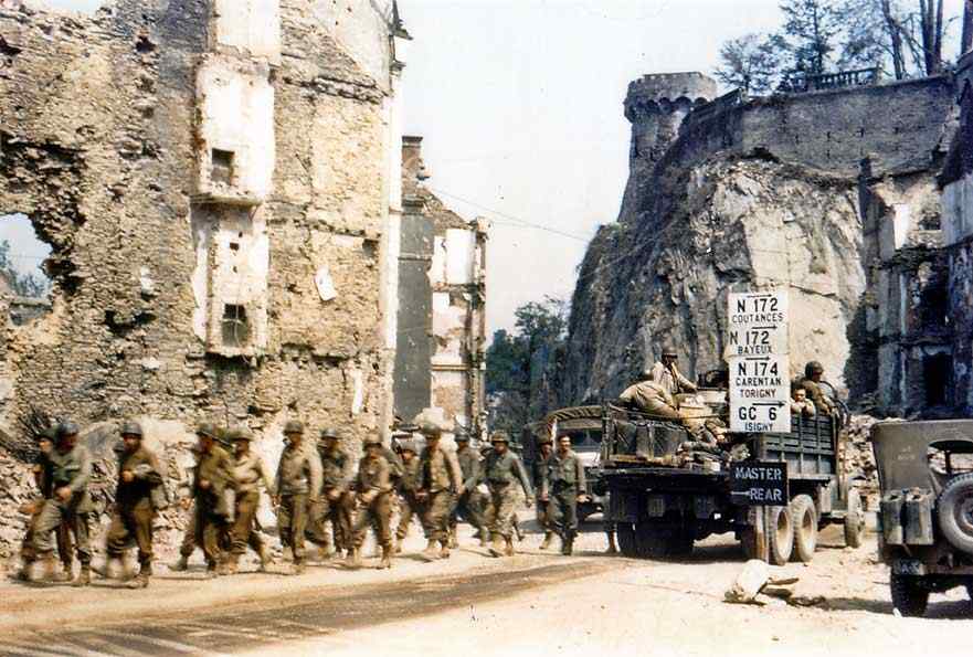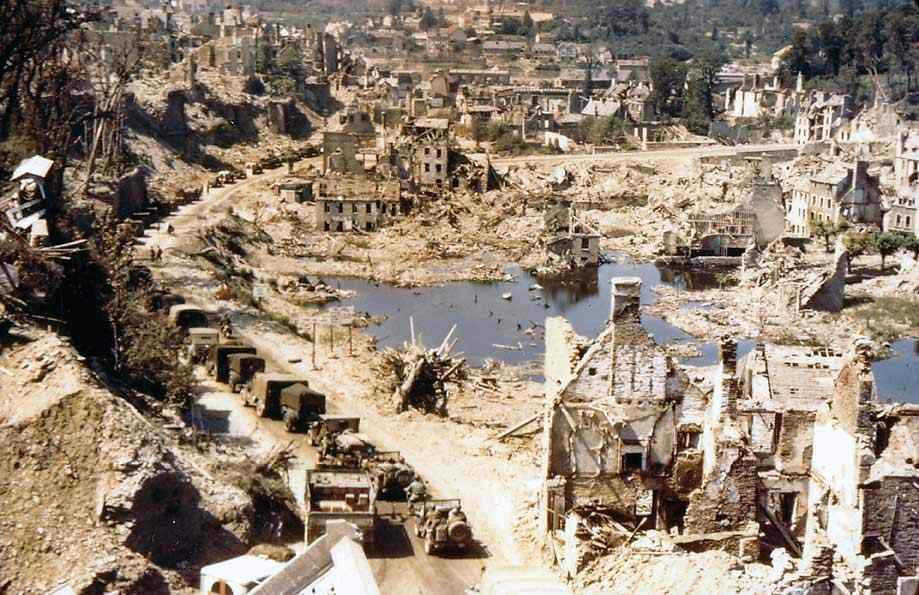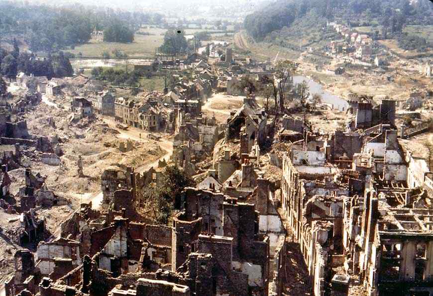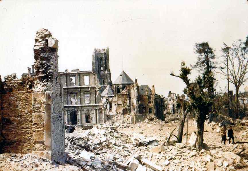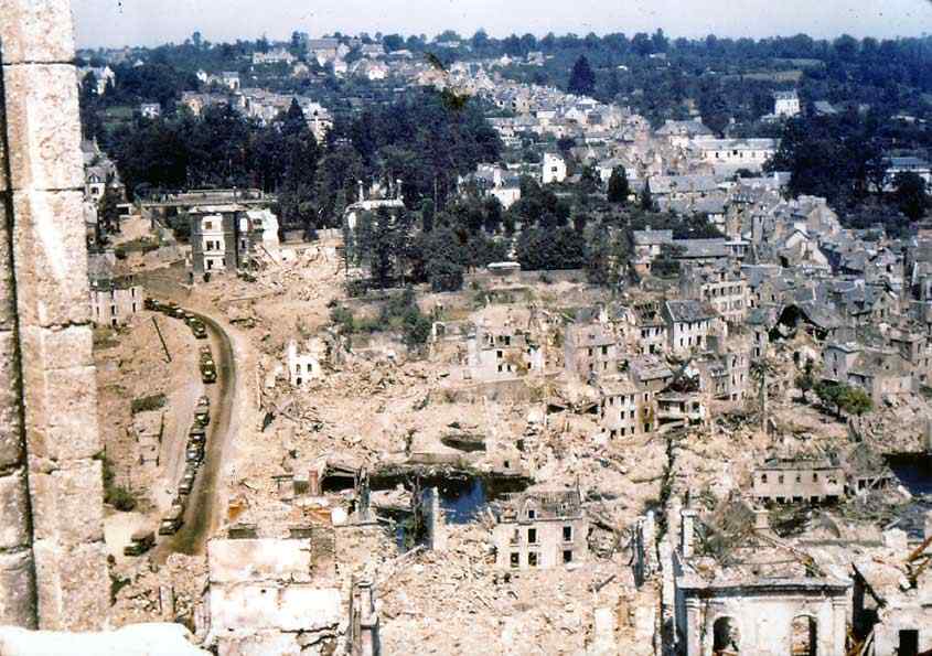 The Battle of Saint-Lô is one of the three conflicts in the Battle of the Hedgerows, which took place between July 7–19, 1944, just before Operation Cobra. Saint-Lô had fallen to Germany in 1940, and, after the Invasion of Normandy, the Americans targeted the city, as it served as a strategic crossroads. American bombardments caused heavy damage (up to 95% of the city was destroyed) and a high number of casualties, which resulted in the martyr city being called "The Capital of Ruins".
