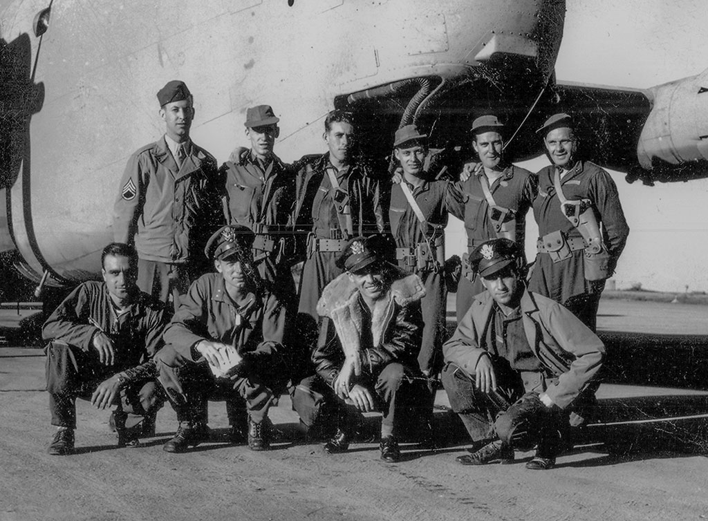 Bob became a First Lieutenant and co-pilot in the 512th Bomb Squadron of the 376th Bomb Group, flying B-24 Liberators. He had volunteered to replace a co-pilot who fell seriously ill, joining a crew that needed to deploy overseas immediately. After ferrying a new B-24 through the Southern route, stopping in Algiers and Casablanca for combat preparations, he arrived in Tunisia as a replacement crew member. He completed 17 combat missions over Nazi-occupied Europe.